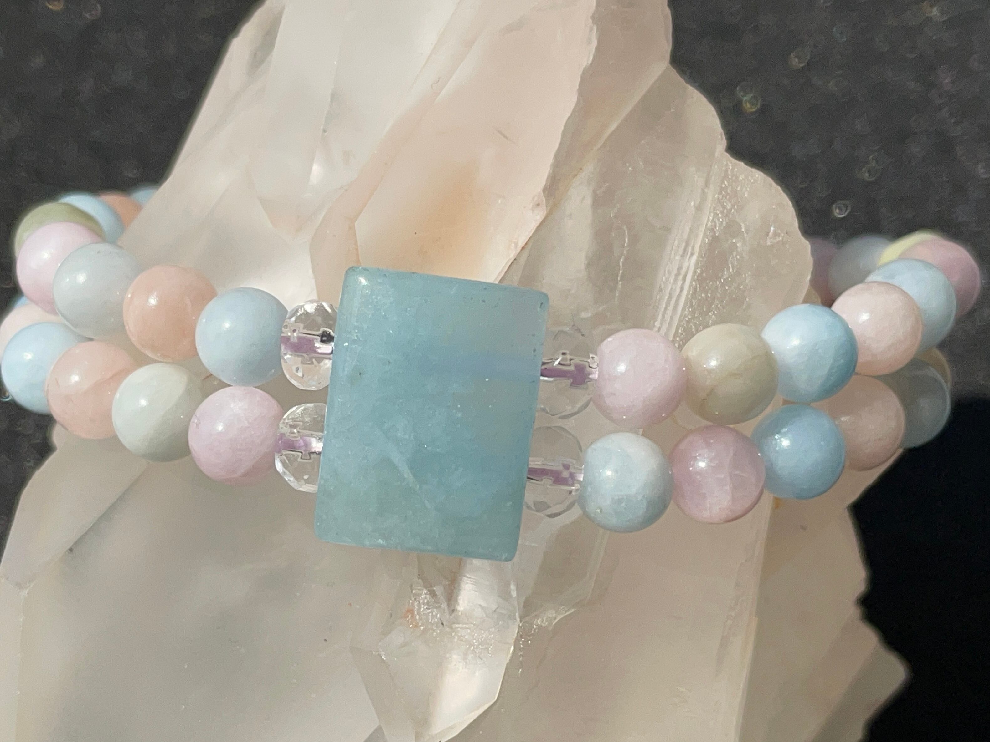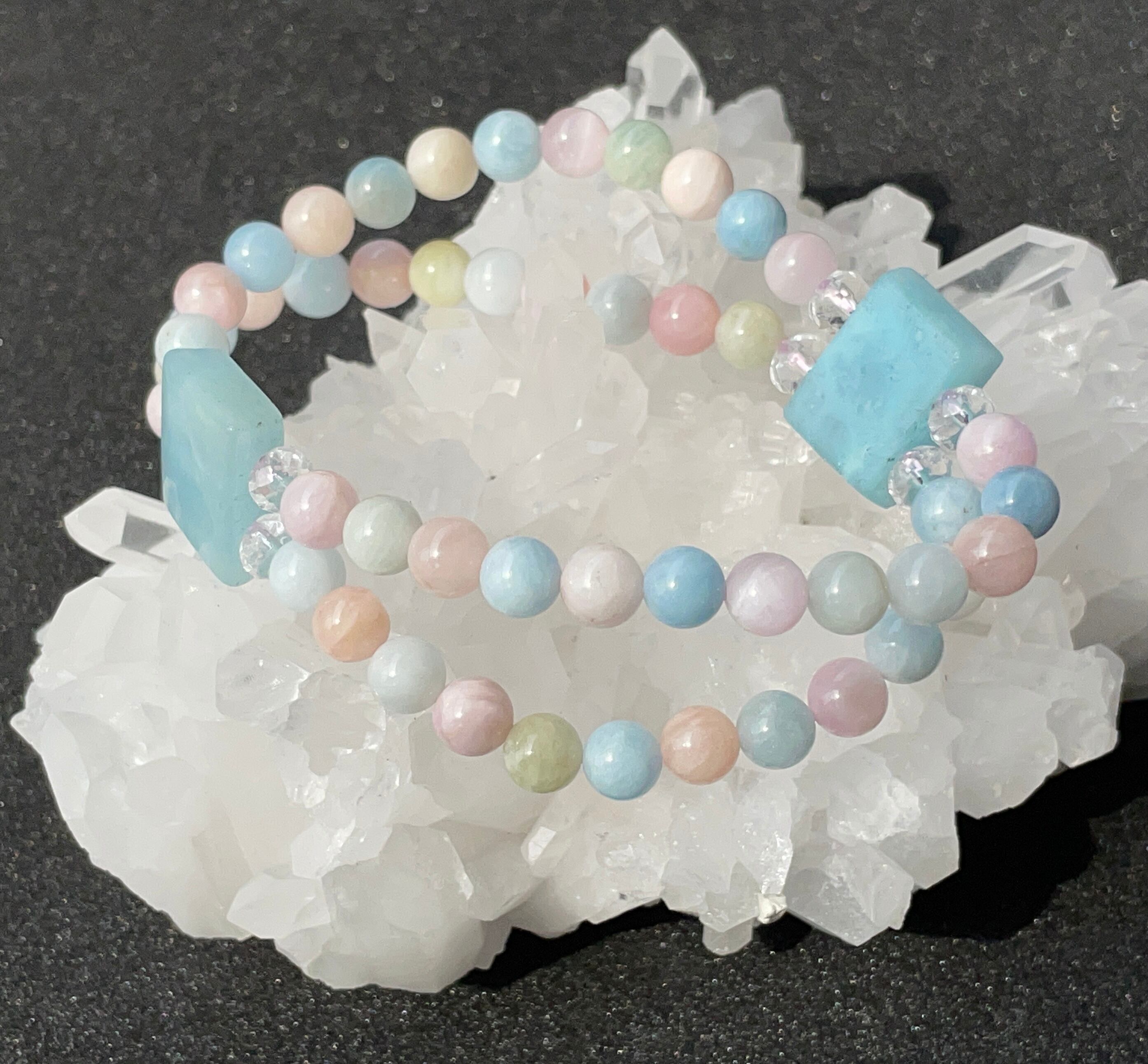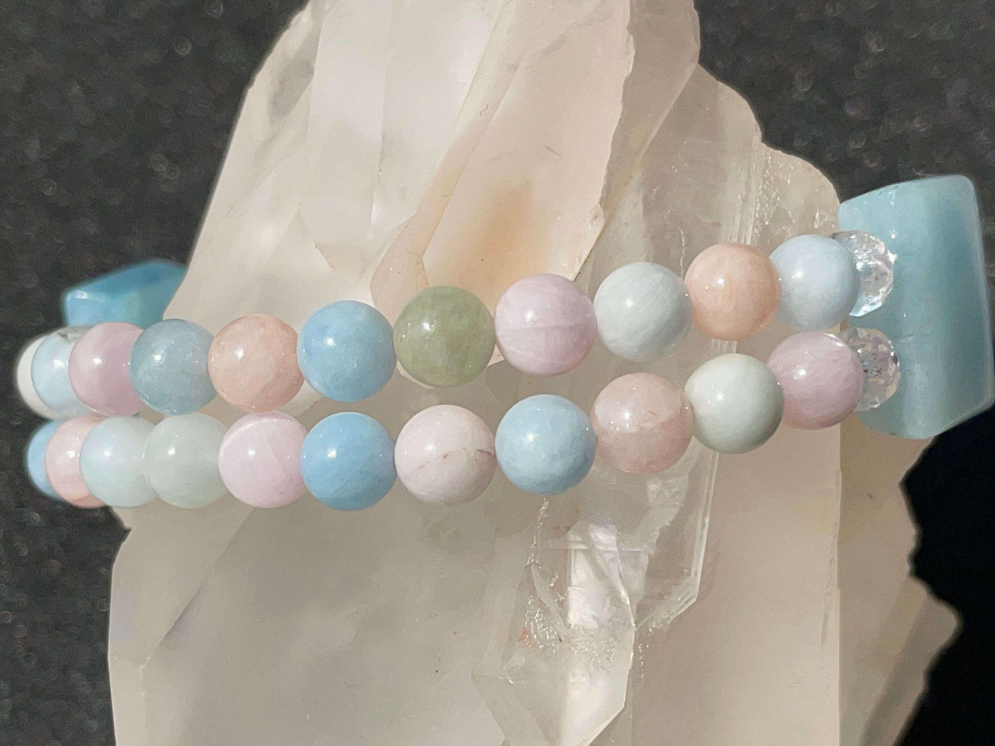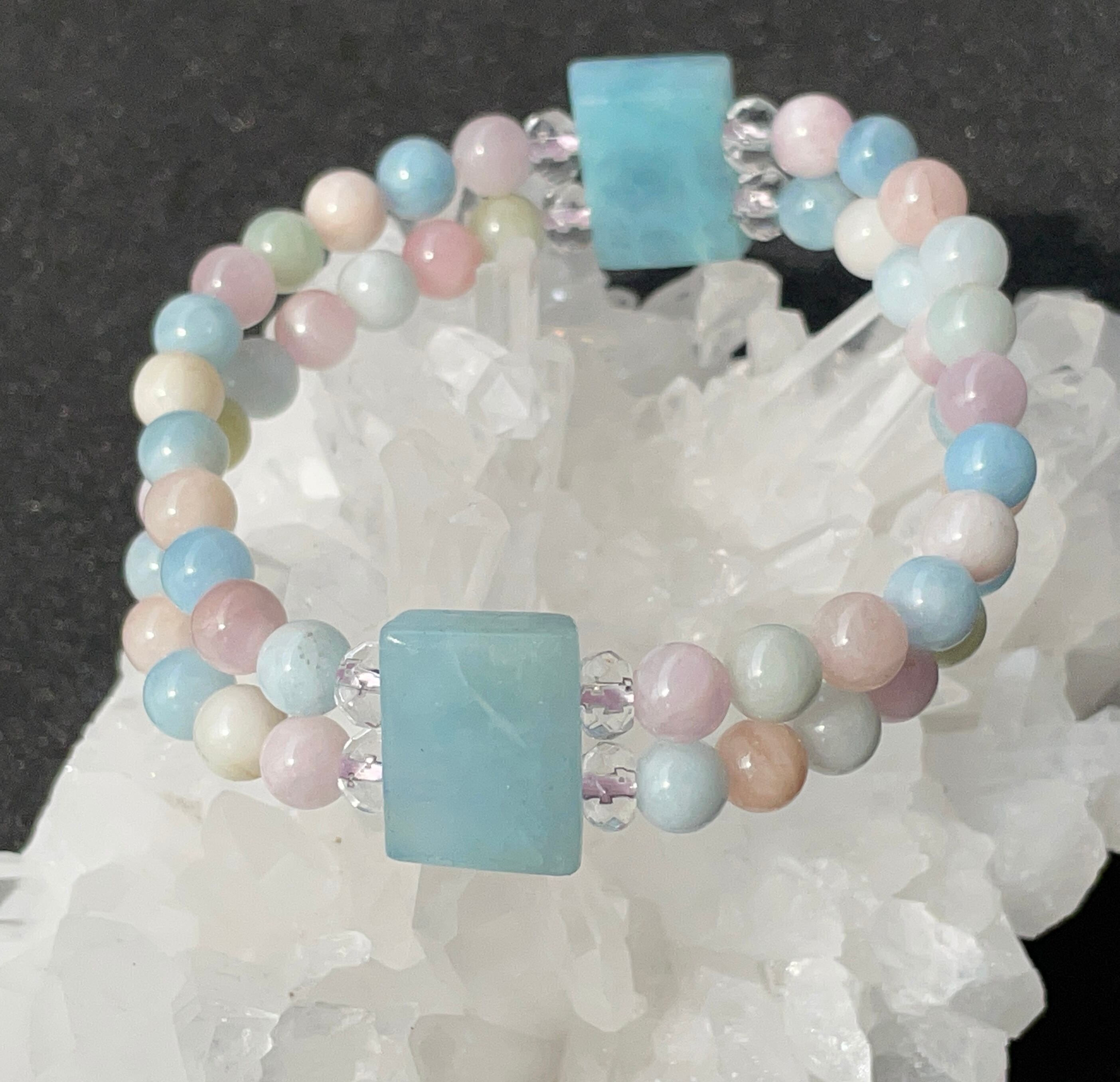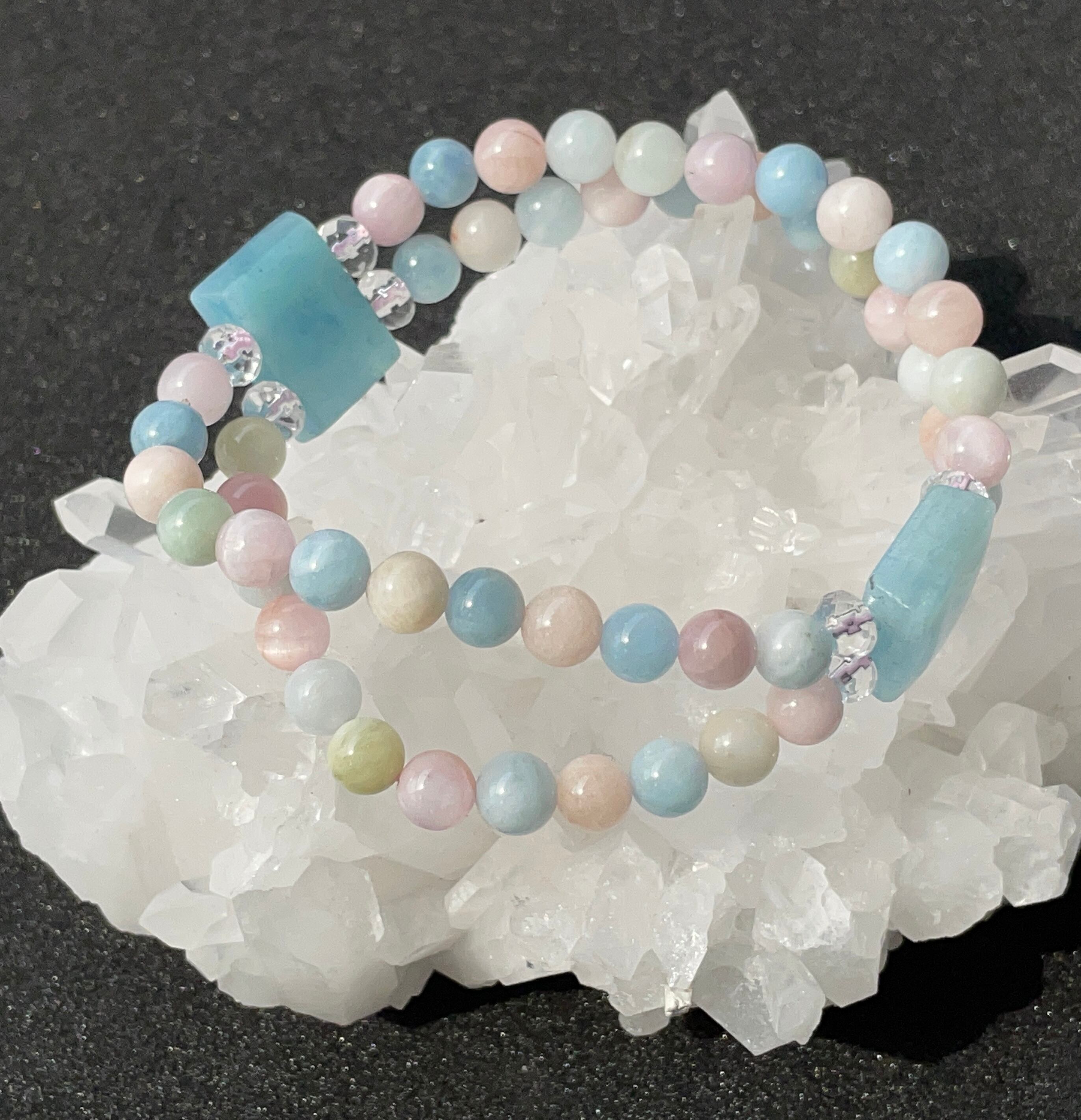 淡いパステルカラーのミックスベリルの2連ブレスです。